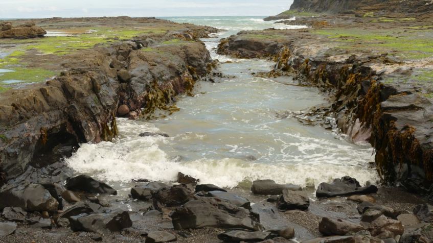 P1250973 Published November 24, 2018 at 1280 × 720 in P1250973 Curio Bay with some petrified trees in the water.